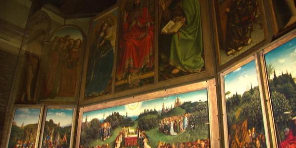 Video | Televisie Video | Televisie Gestolen paneel Lam Gods onder Gentse Kalandeberg? Ligt 'De Rechtvaardige Rechters', het gestolen paneel van De aanbidding van het Lam Gods van de gebroeders Van Eyck, onder de Kalandeberg in Gent? Auteurs Marc De Bel en Gino Marchal schrijven dat in hun boek 'De veertiende brief', dat vandaag voorgesteld wordt. Volgens Het Nieuwsblad neemt de politie de tip ernstig, maar of er ook gegraven zal worden, staat nog niet vast.