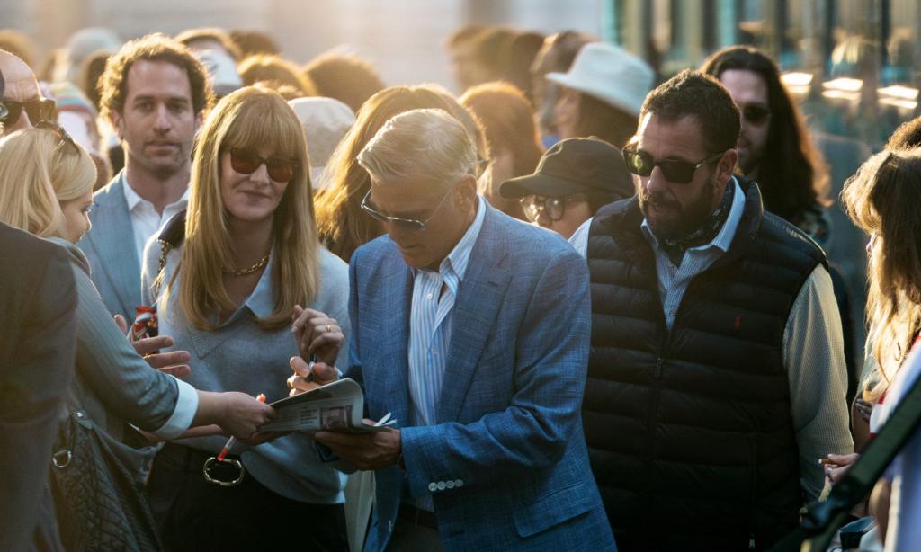 Het verschil tussen acteur en personage lijkt dun. ‘Maar het is géén film over George Clooney’, zweert Baumbach. ‘Coscenariste Emily Mortimer en ikzelf beseften vrij snel dat we een echt filmster nodig hadden om een filmster te spelen. De kijker moet het gevoel hebben dat hij of zij een voorgeschiedenis heeft met Jay Kelly, anders werkt het niet. George leek de geknipte persoon. Hij zou in elk tijdperk een filmster zijn geweest. Hij heeft iets tijdloos. We hebben de film met hem in het achterhoofd geschreven.’ Binnen de 24 uur hapte George Clooney toe. ‘Zijn enthousiasme werkte aanstekelijk.’