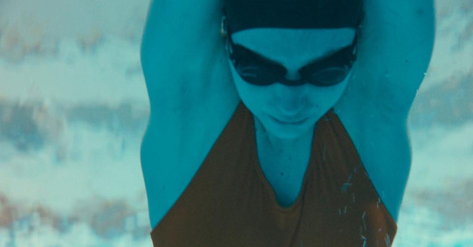 Stewart vertelt Yuknavitch’ levensverhaal niet chronologisch maar associatief, alsof herinneringen elkaar verdringen zonder ooit echt te bezinken. We volgen Lidia van een gewelddadige, toxische jeugd – ze wordt misbruikt door haar vader (Michael Epp) – naar een vlucht in competitief zwemmen, seks, alcohol en drugs, langs mislukte relaties en een ondraaglijk verlies, tot ze via schrijven voorzichtig een vorm van zelfredding vindt. Dat alles ontvouwt zich in flarden, scènes die opduiken en weer verdwijnen als ademteugen onder water. Plot is hier geen rechte lijn, maar een stroming.