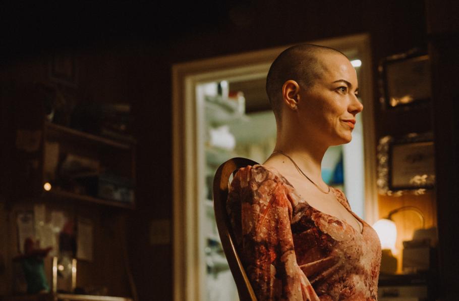 De film is ook fysiek intens. En niet alleen omdat er minstens evenveel in geslagen, gegild en gerend wordt als in een safespace waar plots een afwijkende mening binnensluipt. Stones beslissing om haar hoofd echt kaal te scheren tijdens de opnames – ‘Dat was geen trucage of prothese, hoor’ – is emblematisch voor Lanthimos’ methode: acteren als overgave. Als ritueel offer. ‘Dat moment was niet gepland als spektakel’, zegt ze, haar koperrode haar ondertussen alweer in een pixie cut. ‘Het was gewoon logisch voor Michelle: ze ontdoet zich van haar façade, letterlijk. En tegelijk is het een performance, een berekende daad van controleverlies. Dat soort tegenstrijdigheden, daar leeft Yorgos van.’