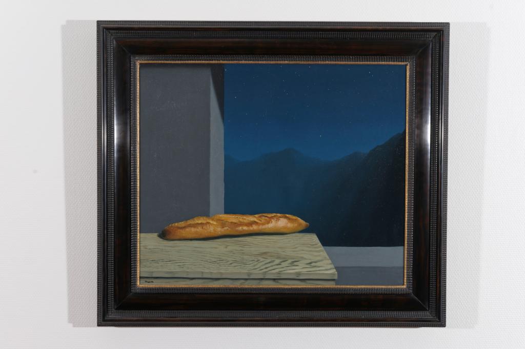 De expo is gebaseerd op de gelijknamige lezing die Magritte hier gaf op 20 november 1938. Veertig minuten lang sprak hij over zijn jeugd, zijn academietijd, zijn ontdekking van Giorgio de Chirico, en vooral over die droom uit 1936: een kooi met daarin een ei. Van die lezing bleef alleen een syllabus, wat glasplaatdia’s en een zwart-witfoto over: Magritte langs de Scheldekaai met collega-surrealisten Paul Nougé, Jean Grimau en de dan pas 18-jarige Marcel Mariën. De tentoonstelling herneemt niet alleen verschillende werken die Magritte tijdens die voordracht besprak, maar reconstrueert ook die historische avond. Op basis van zeldzame interviews en met behulp van AI-technologie wordt zijn stem opnieuw hoorbaar gemaakt en aan het einde van de expo hoor je Magritte zelf spreken in een apart zaaltje.