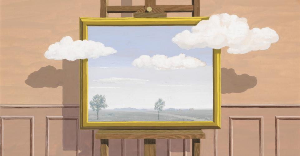 Zijn schilderijen ogen koel, universeel, quasi-wetenschappelijk – maar ze hebben de flair van een goeie reclamecampagne. Geen borstelstreek te veel, geen emotioneel lek. Magritte – die zijn carrière begon in de reclamewereld en dus wist hoe je lucht verkocht – schildert het mysterie alsof het een product is.
