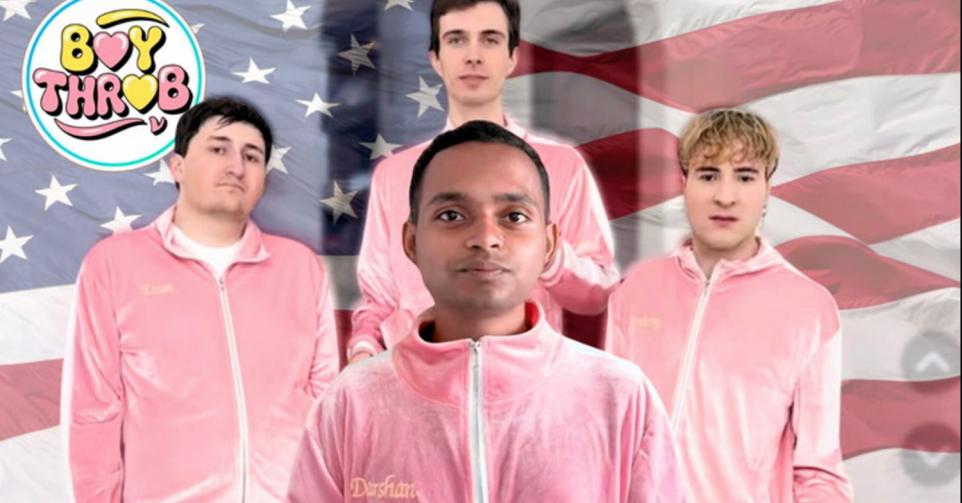 Ze dragen roze fluwelen joggings met gele sneakers, azen op een Grammy, hebben een miljoen volgers maar hun vierde lid zit vast in India. Boy Throb is de meest verwarrende boyband van het internet.
