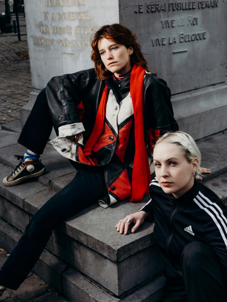 De twee artiestes delen niet alleen een uitgelaten podiumenergie, ze blijken geen van beiden in de wieg gelegd voor smalltalk. Nog voor de recorder aanstaat, zijn ze al druk aan de praat over hun worstelingen met sociale media. ‘Ik haat verslaving’, zegt Cazaerck als ze vertelt dat ze tegen haar wil in eindeloos blijft scrollen. ‘Ik stop overal meteen mee zodra ik voel dat het macht over me begint te krijgen, en dat lukt me altijd, behalve met mijn gsm. Ik kocht ooit zo’n kluisje waarin je je smartphone een tijd kunt opbergen. Ik heb het ding twee keer gebruikt. Terwijl het zo’n deugd doet om gewoon wat naar buiten te staren.’