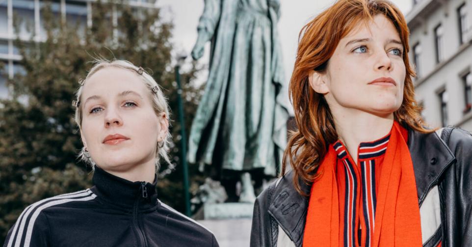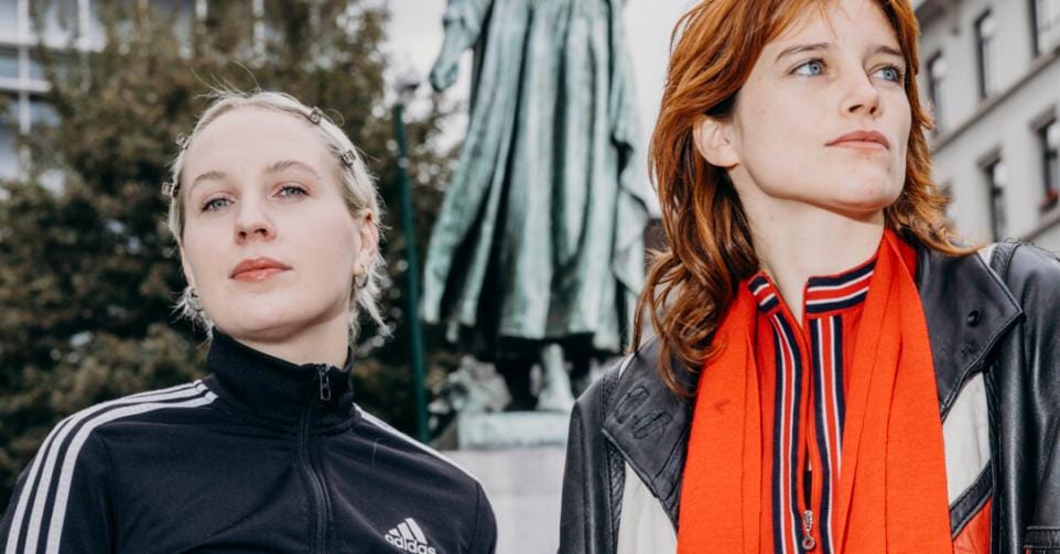Als je een dubbelinterview inplant met Kaat Vanstraelen (24) – de officiële naam van de frontvrouw van punkband Kaat Van Stralen – en Helena Cazaerck (30), dan kun je voorspellen dat het een gesprek wordt met pittige meningen. Dat Cazaerck me een dood vogeltje cadeau zou doen, had ik evenwel niet verwacht. De frontvrouw van Maria Iskariot houdt het mussenlijkje in haar hand als ik haar en Vanstraelen begroet op het Brusselse terras waar we hebben afgesproken. ‘Mooi toch?’ reageert ze op mijn ietwat verwarde blik. ‘Je krijgt het van me. Je weet wel, zoals katten doen. Ik heb hem hier zojuist op straat gevonden.’ Als ik het beestje niet meteen van haar overneem, legt ze het in het midden van de tafel. ‘Bon, nu ga ik even mijn handen wassen.’