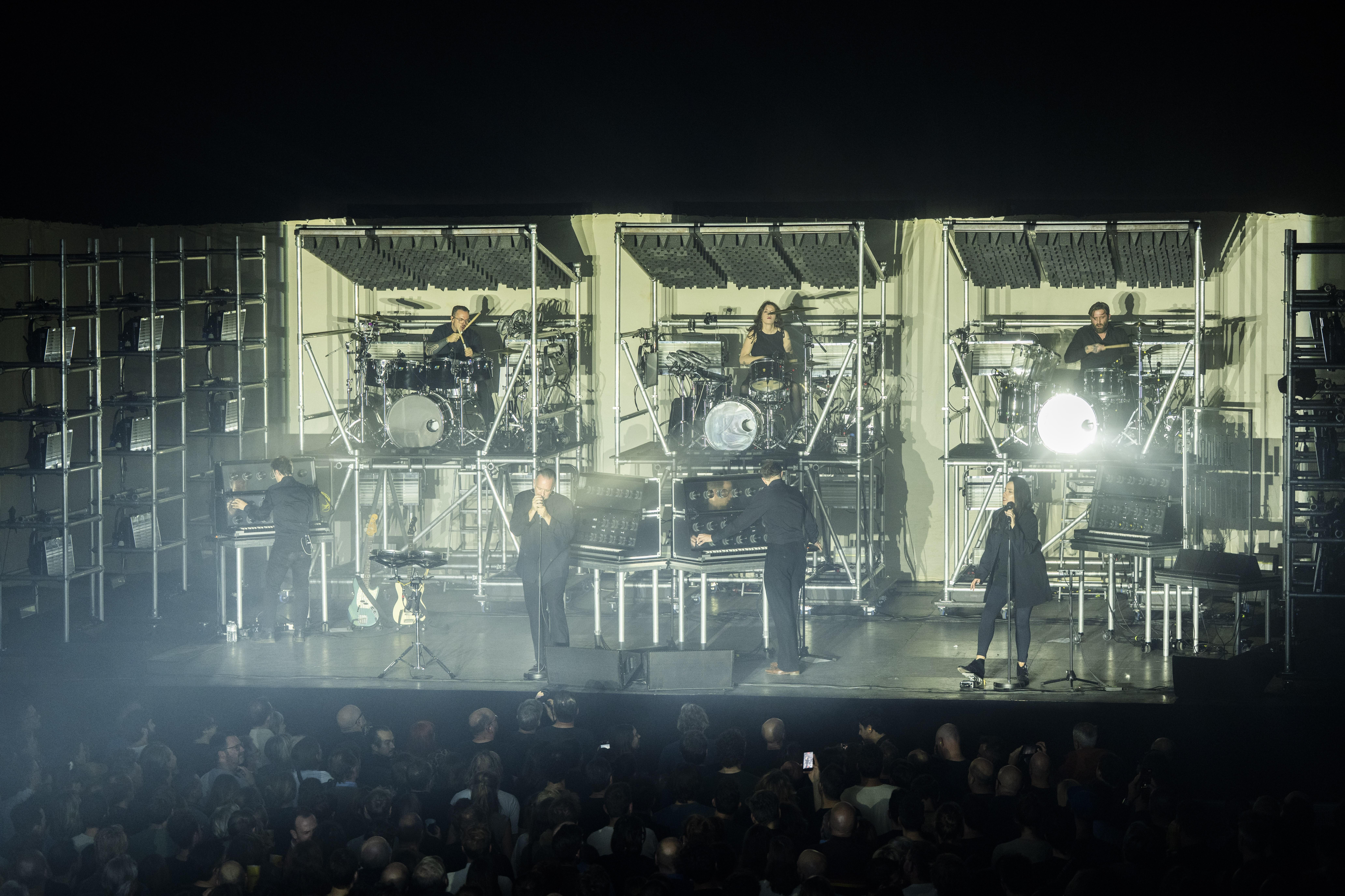Naar het einde toe plukte Soulwax nog enkele nummers uit Any Minute Now. Miserable Girl, E Talking en NY Excuse klonken één voor één opzwepend en opwindend, met lang uitgesponnen instrumentale passages die uitmondden in een zinderende climax. De toegiften waren voorbehouden aan False Economy (over het dictaat van algoritmen en ‘likes’) en, zeer verrassend, het oude Conversation Intercom, dat ook in 1999, toen Soulwax nog een gitaarband was, al over verstoorde communicatie handelde (‘Translation seems to sabotage the words’). Stephen Dewaele, die in Brussel de stemvervormers niet schuwde, zong het nummer nog altijd even overtuigend. Alleen droeg het nu een elektronisch jasje.