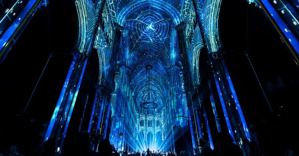 Het spektakel schijnt zijn betoverende licht op de eeuwenlange geschiedenis die deze uitzonderlijke plek heeft gekenmerkt. Deze momenten van licht en schaduw worden weerspiegeld in de architectuur en de sierlijke glas-in-loodramen.