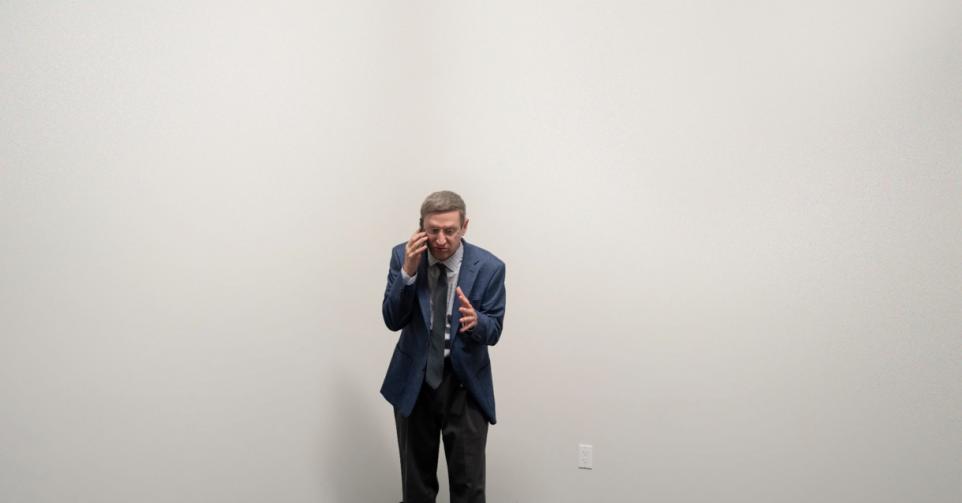 Hoe hard William soms schreeuwt: zijn crash out is herkenbaar. Op zijn geestdodende werk moet hij omgaan met een collega die een bellenblazer rond zijn nek draagt om het ‘fun’ te houden en eentje die hem beschuldigt van MeToo na het stoelenincident. Zijn grote project is een shoppingcenter, niet bepaald het hipste concept. En telkens hij het stoelenbedrijf wil bereiken, vindt hij óf geen telefoonnummer óf wordt hij geterroriseerd met idiote wachtmuziek. Wanneer duidelijk wordt dat grote bedrijven geen zier geven om klachtenmanagement, slaan zijn stoppen door. Het doet denken aan een observatie die de Netflixreeks Beef twee jaar geleden al deed: in het laatkapitalisme zijn het niet altijd de grote klappen die ons over het randje duwen, maar de dagelijkse ongemakken. En William is klaar met op zijn tanden te bijten.